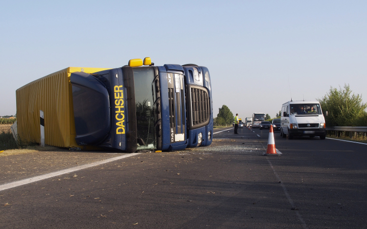Felborult kamion miatt félpályás útzár van az M5-ösön